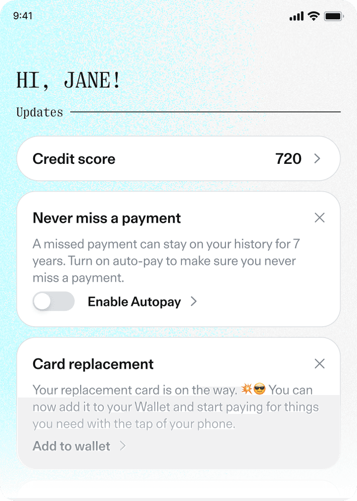 Built with students in mind. No prior credit history needed, and no co-signer required. Just an easy way to build your future, starting today.